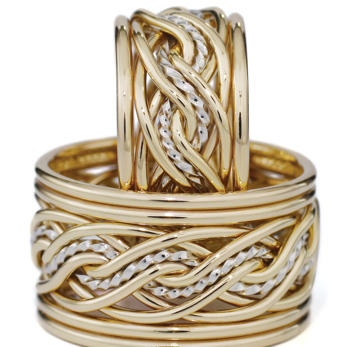 Outer bands can still be different — the shared braid is always at the heart of the design.